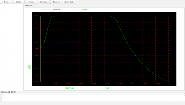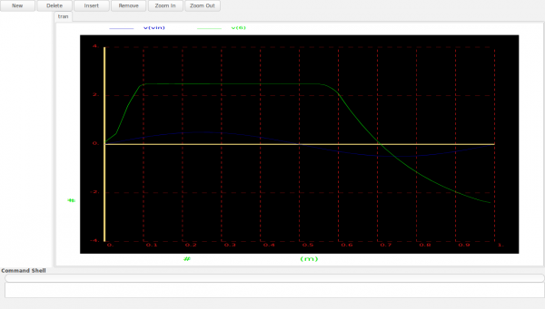 gplot tran v(vin) v(6) [title=example labelx=time labely=volt ngrid=10 saveplot=tran_example ]